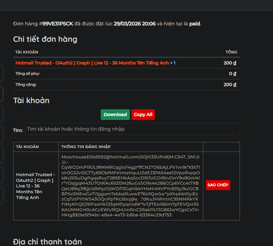 Thông tin tài khoản đã mua